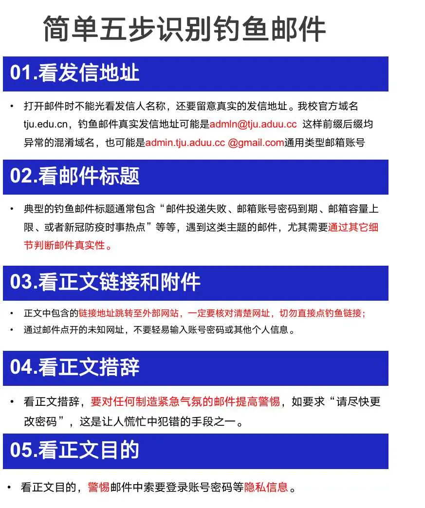 - 看正文目的。警惕邮件中索要登录账号密码等隐私信息。